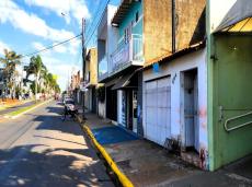 Um imóvel comercial, na frente um espaço estacionamento ...